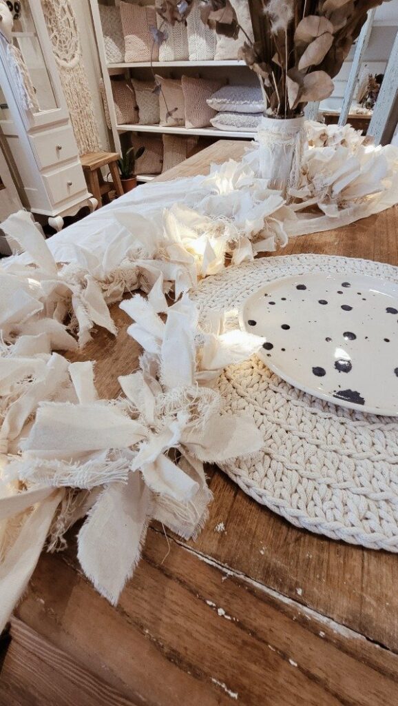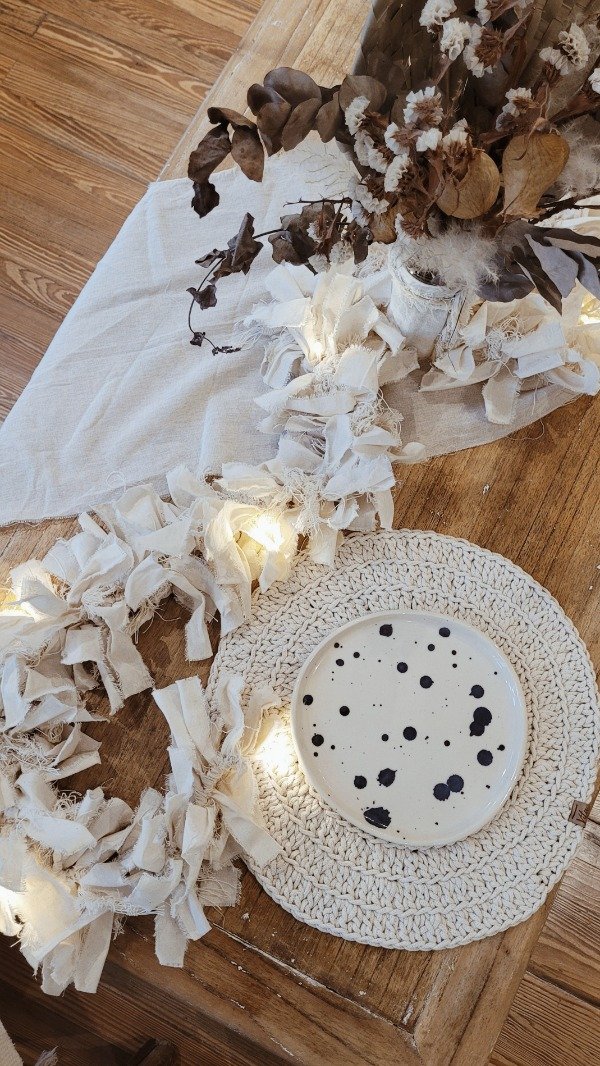 La Guirnalda shine es el producto estrella de esta epoca. Confeccionada 100% artesanalmente con liengo, luces y realizada por manos con historia, nos invita a dar calidez a nuestra mesa de Navidad.