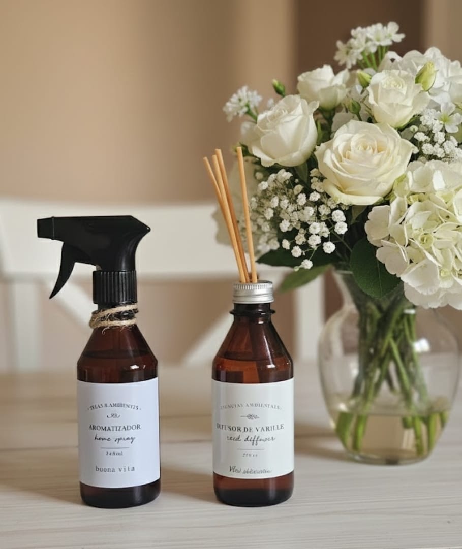 Este box esta formado de dos productos para aromatizar ese ambiente especial en tu hogar. Home spray y difusor con varillas para que el aroma a vainilla oriental o bergamota cashmeran sean la marca personal de tus ambientes.