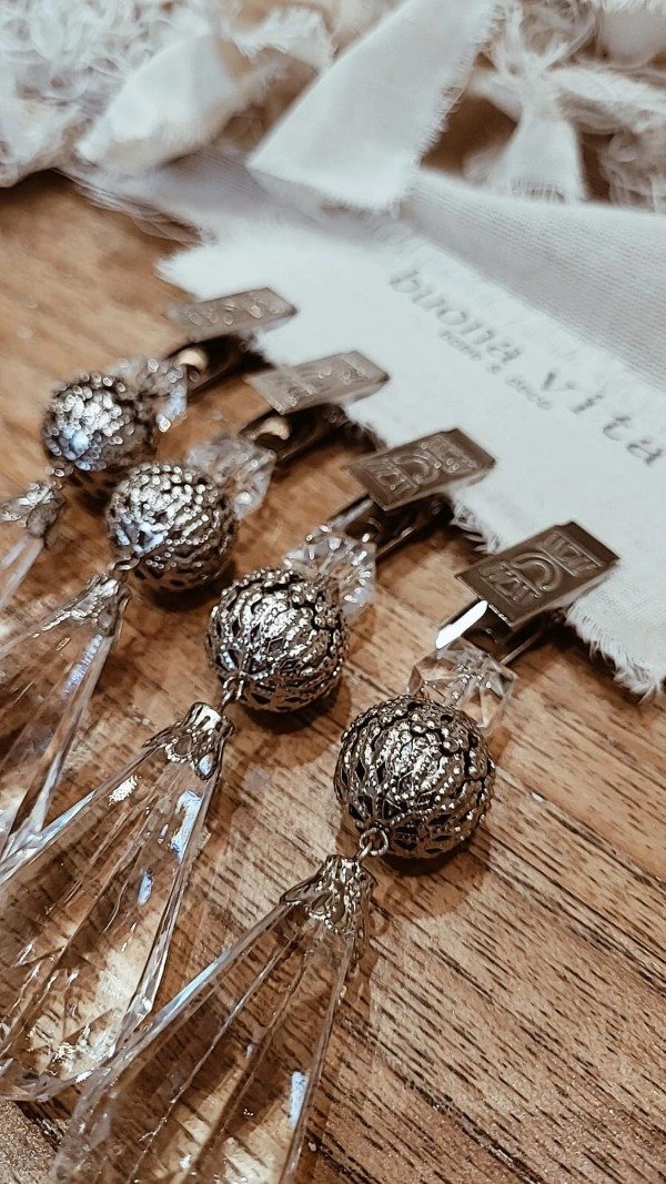 Set de 4 pesas de mantel hechas 100% a mano, super pesadas, con caireles y filigranas color bronce envejecido.